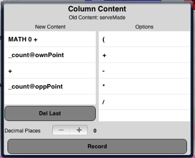 - Serve Made -- if the green team is serving, the person in the server's position is automatically credited with having made the serve